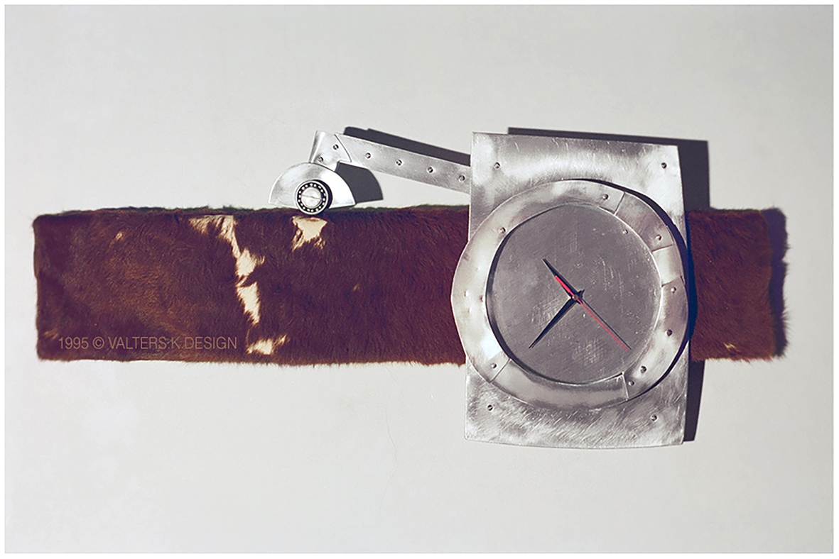 «Мы еще в советское время учились по программе Латвийской академии художеств “Промышленный дизайн”. В период перемен, во время Атмоды, все заводы фактически исчезли. Мы, дизайнеры, стали художественными дизайнерами и начали работать с редимейдами — находить, переосмысливать и соединять предметы. (…) Эти часы логично выросли из того опыта», — рассказывает художник и дизайнер Валтер Кирштейнc.