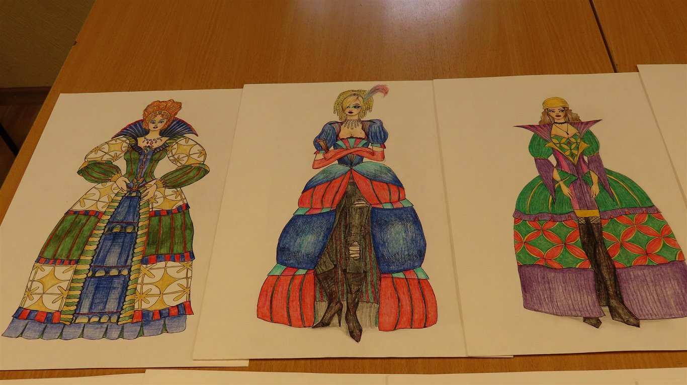 «У нас была тема об исторических периодах моды, и задание — добавить современные элементы, смикшировать, это ведь самый актуальный стиль. Вот, здесь студийцы изобразили детали панковской моды… Рисовали от периода барокко до современных стилей — хиппи, спортивного. Стили моды — это основное, что мы здесь изучаем», — говорит художница и педагог Даце Делиня-Липска, показывая рисунки.