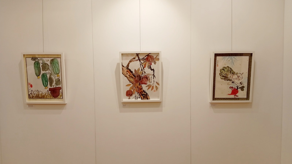 Помимо живописи, на выставке можно насладиться каллиграфическими работами с китайскими изречениями о труде и урожае. Выставка продлится до Рождества. Здесь же представлены работы на шелковых, льняных и кожаных полотнах — каждая из них отражает впечатления от поездки этим летом в Китай.