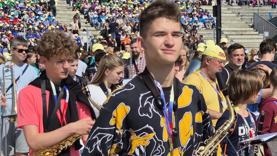 «Сейчас у нас смена поколений. На Праздник мы привезли самых маленьких наших детей — 5-й, 6-й класс. Это, конечно, хлопотно. Вот мы, педагоги, сегодня полночи не спали, были на посту. Зато для детей участие в Празднике песни — незабываемые впечатления. Они это запомнят и потом будут хорошо играть».