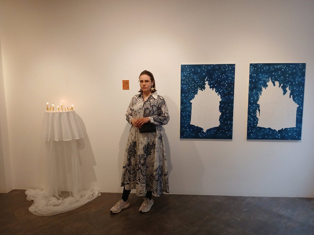 «Вы можете всё это спокойно интерпретировать самостоятельно, — говорит Иева. — А пока что могу сказать, что действительно я здесь уже семь недель, и этой pop-up-выставкой завершаю свою художественную резиденцию в галерее. Я готовлюсь к магистерской диссертации, которую буду защищать этим летом на кафедре живописи Латвийской академии художеств. Я сейчас на полпути к диссертации. И в каком-то смысле на полпути к восстановлению личной веры. Поскольку моей основной областью исследований в искусстве является феномен веры, которым я называю человеческую потребность и способность верить во что-либо вообще».