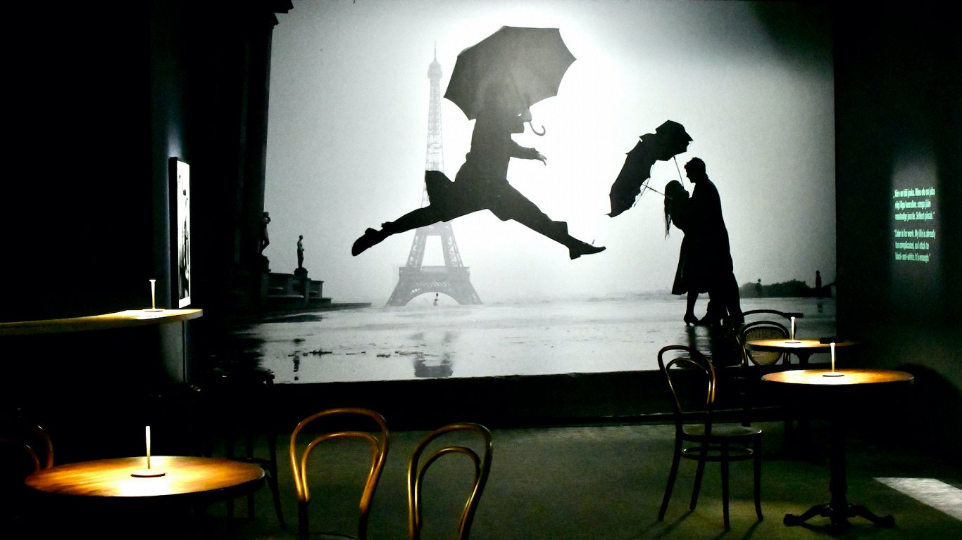 «Редкий дар показывать серьезные темы и глубокие переживания через призму юмора» (цитата из предисловия кураторов выставки) сохранен и в том, как экспозиция сделана. Ты оказываешься то в маленьком парижском кафе, то становишься зрителем у киноэкрана. А по ту сторону его сам Эллиотт Эрвитт — с историями, признаниями, мистификациями и… саморазоблачениями.