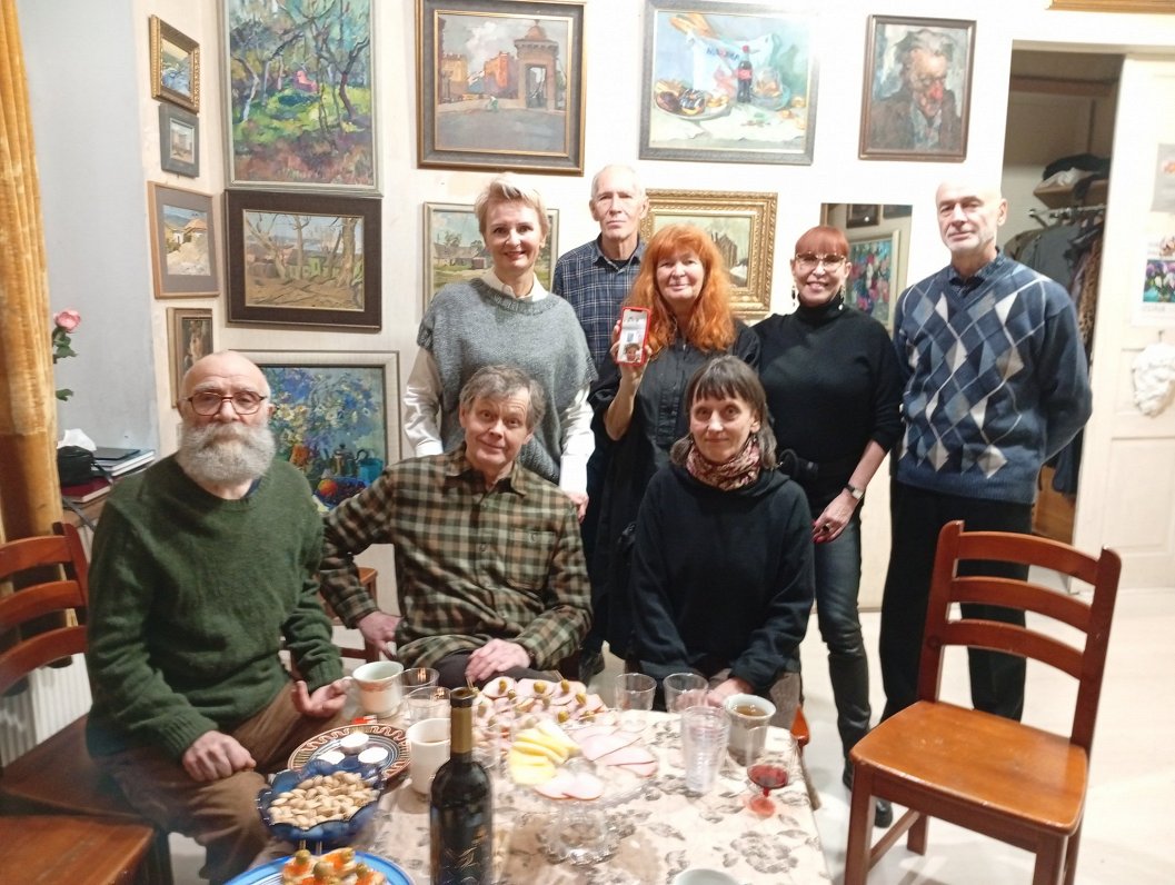 «Я поступила в студию Виталия Борисовича в 84-м году, в ноябре месяце, — рассказала хозяйка вечера Людмила Перец. — Я уже “старенькая” была, 27 лет, ребенок на руках, а Яна была юная барышня. Решила, что считалась старушкой, ну, правда. И попала в самую младшую группу. Я принесла огромную папку рисунков, акварелей. И вот это была моя ошибка. Он полистал и подумал — наверное, какая-нибудь дилетантка. Он преподавал рисунок, а у меня — папка акварели. И он дал мне задание.