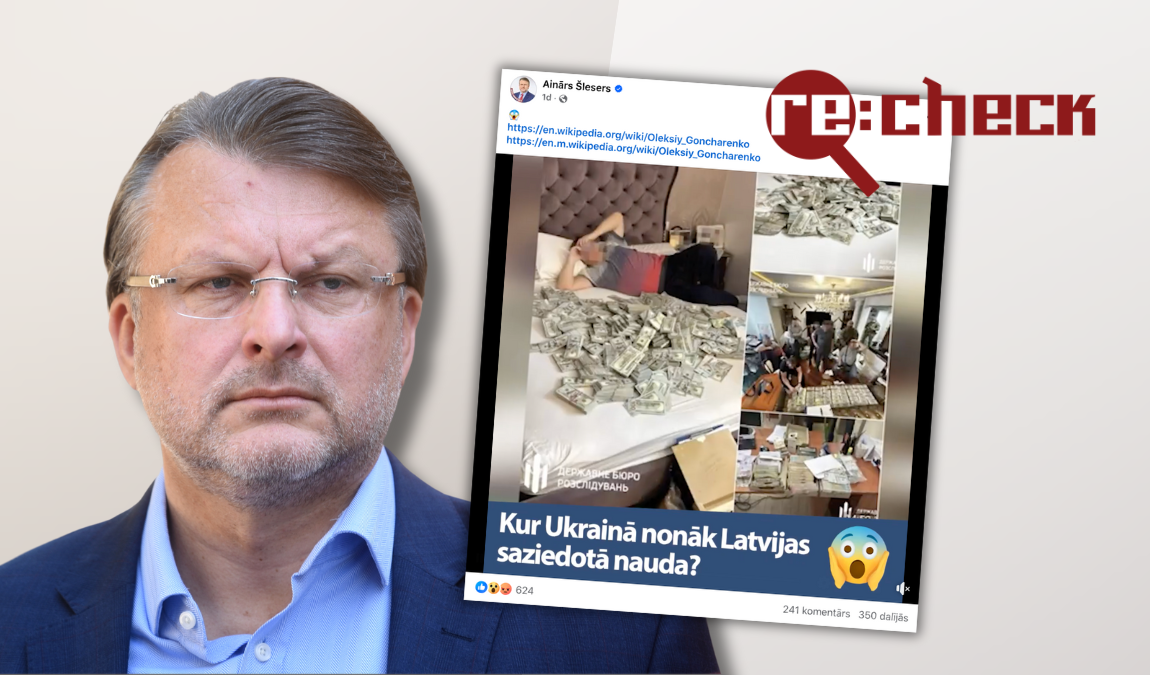 «Куда деваются деньги, пожертвованные Латвией Украине?» — такими словами лидер партии «Латвия на первом месте» и депутат Сейма Айнар Шлесерс подписал перепощеный видеоролик о коррупционном скандале в Хмельницкой области Украины. Там чиновницу и депутата поймали на выдаче поддельных медицинских справок для уклонения от мобилизации. Однако нет оснований полагать, что деньги, найденные в квартире чиновницы, были пожертвованиями из Латвии или какой-либо другой страны Украине, говорится в сюжете Re:Check — фактчекингового проекта центра журналистских расследований Re:Baltica.