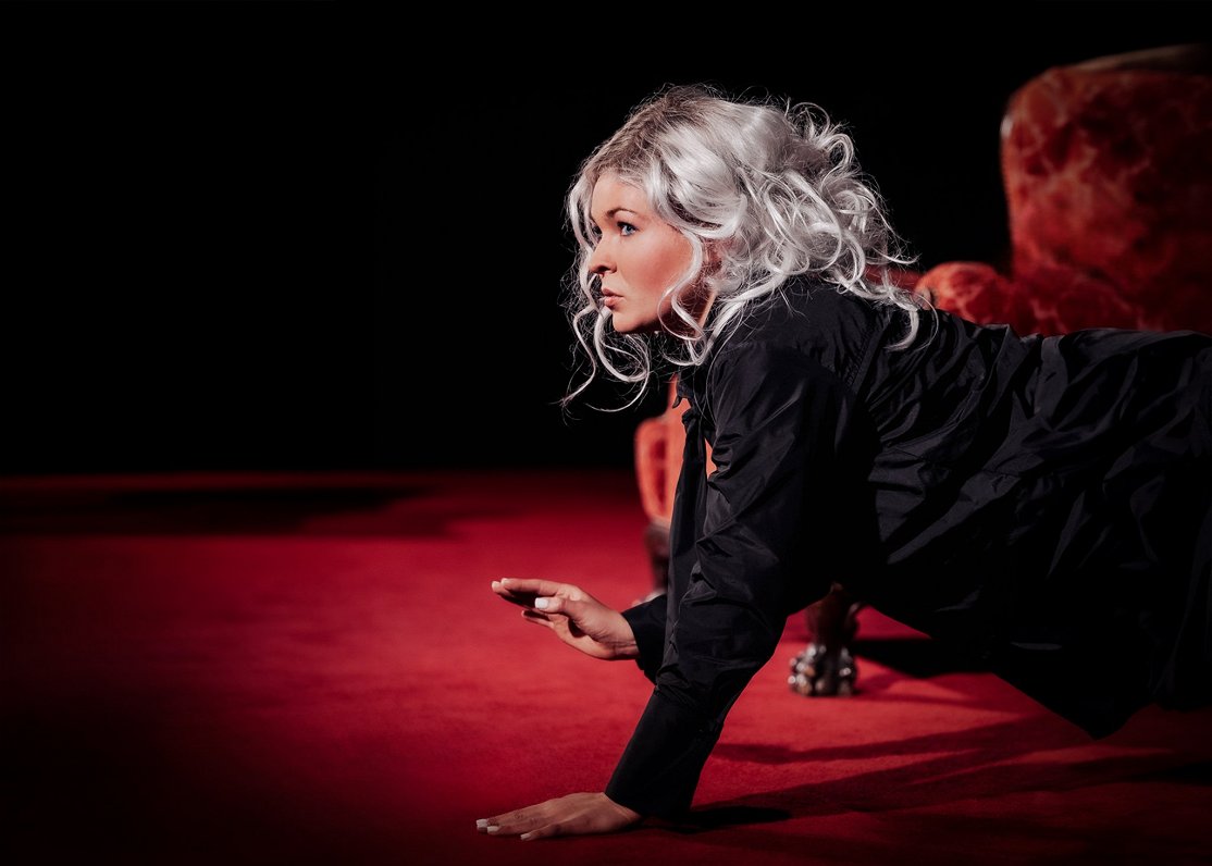 Хотя в самом начале спектакля героиня называет людей своими хозяевами, но тут же оговаривается, что это неверно, правильно сказать слуги. Единственная актриса в постановке Занда Манкопа говорит, что для неё работа в формате моноспектакля также дебют: