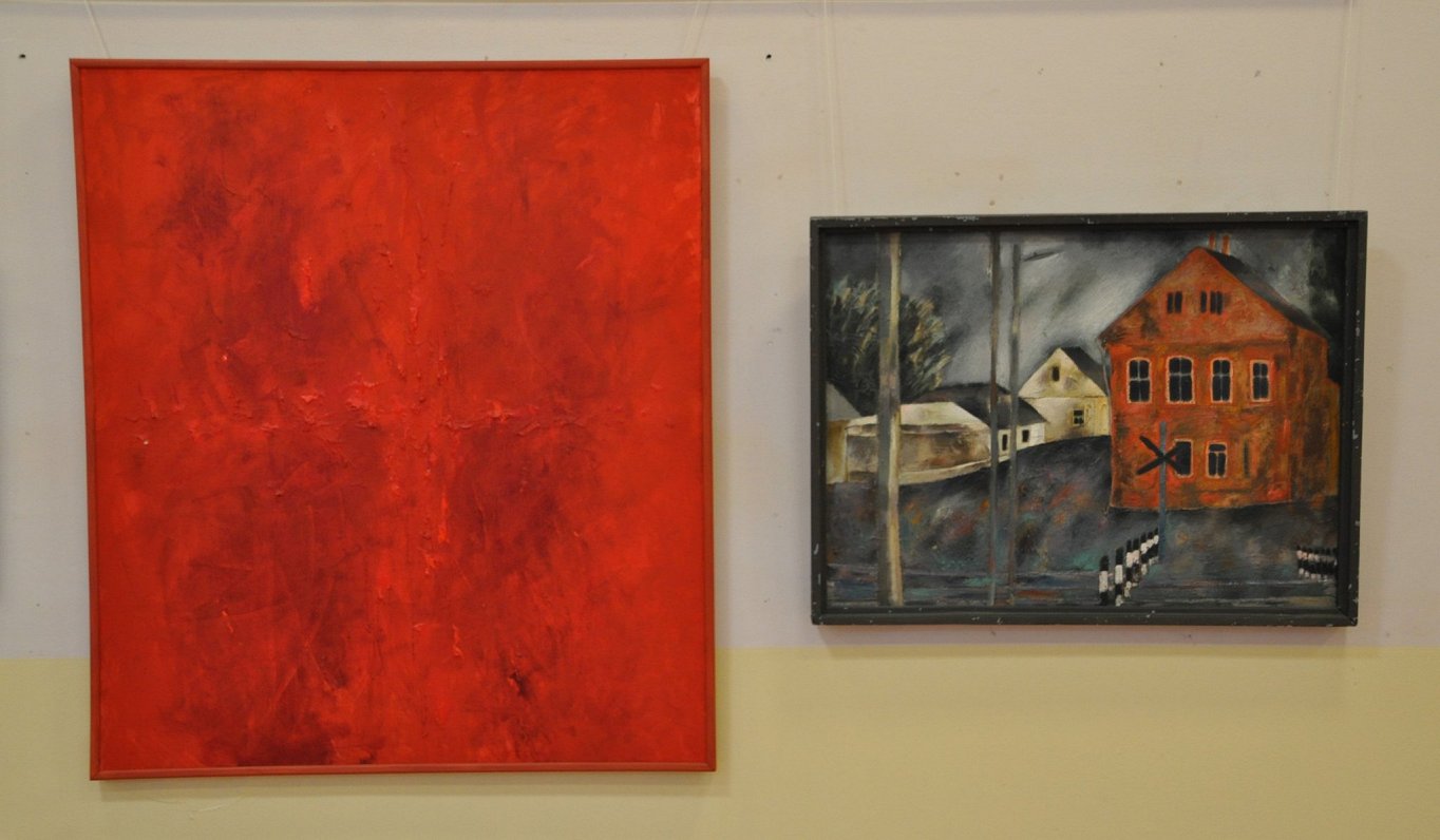 На выставке много абстракций в тонах национальной символики, есть и предметная живопись. Глиняная посуда и черный ржаной хлеб на натюрморте Жанны Орловой, безусловно, олицетворяют Латвию, как и развевающиеся на ветру волосы на женском портрете Натальи Крюковой — они одновременно похожи на флаги и на чаек, символизирующих Даугавпилс.