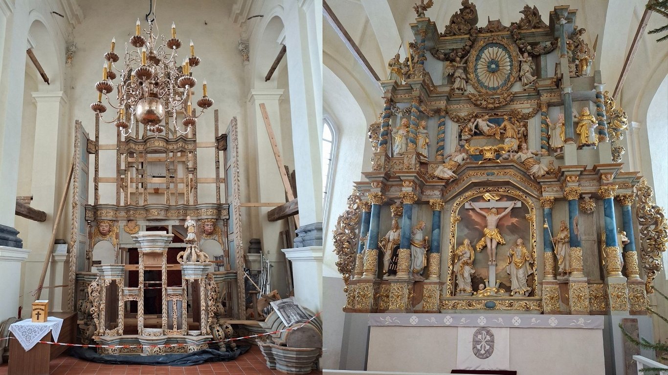 Многое в Лестенской церкви уже восстановлено — алтарь, кафедра и люстры вновь обрели свой прежний роскошный облик. В конце прошлого года мастер органостроения Янис Калныньш вместе со своими специалистами смонтировал органный проспект, который временно разместили в храме, чтобы экспертная комиссия по органам могла увидеть его вживую и оценить ход строительства инструмента. После этого проспект будет демонтирован и отреставрирован по частям. Однако уже сейчас есть возможность получить представление о будущем величественном инструменте, а также узнать о шагах его восстановления. Янис Калныньш отмечает, что место, где сейчас установлен проспект, выбрано верно, лишь сам орган будет находиться на четыре метра выше, поскольку сначала необходимо построить балкон.