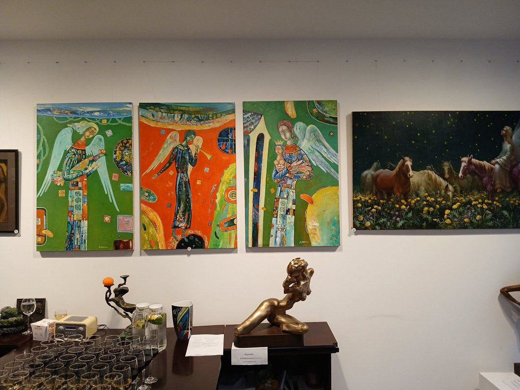 В T. Art Gallery (Рига, улица Стабу, 44) — выставка на заданную тему, в которой принимают участие сразу несколько художников. Экспозиция эффектная — сразу привлекает внимание монументальное полотно с распятием Христа, а также работа с бычьим черепом и рогами.