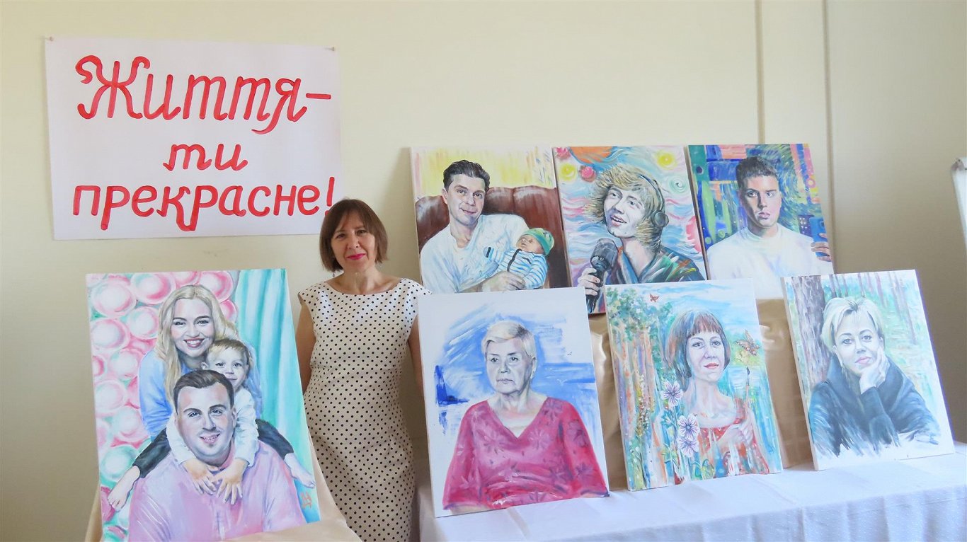 Но семья, несмотря на все проблемы, остается главным в жизни человека. Совместила приятное с полезным — и стипендию получила, и нарисовала членов семьи. Решила сделать и импровизированный семейный альбом — все настоящие остались на оккупированной территории. Это те фото, которые были в телефоне…», — рассказала Наталья Дяченко, указывая на стенды с фотографиями родных напротив их портретов.