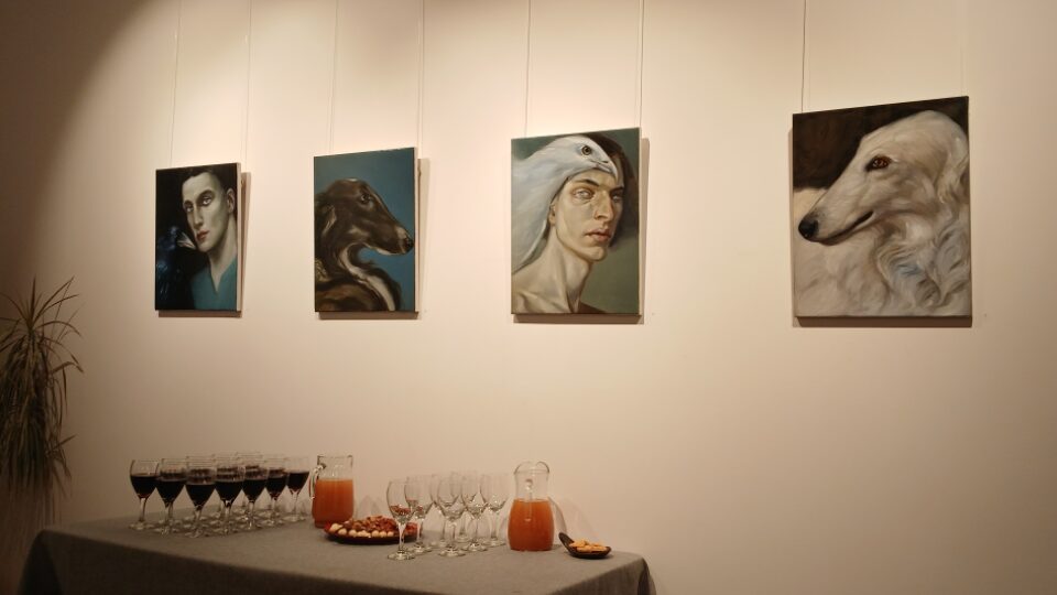 В галерее книжного издательства Aminori (Рига, улица Кришьяня Валдемара, 69) — персональная выставка художника Атиса Якобсонса, творчество которого можно назвать загадочным и изысканным. И открытие прошло в изысканном стиле, в присутствии элегантных собак, одну из которых, кстати, зовут Рафаэлем. Между прочим, наряду с людьми собаки также стали героями портретов художника.