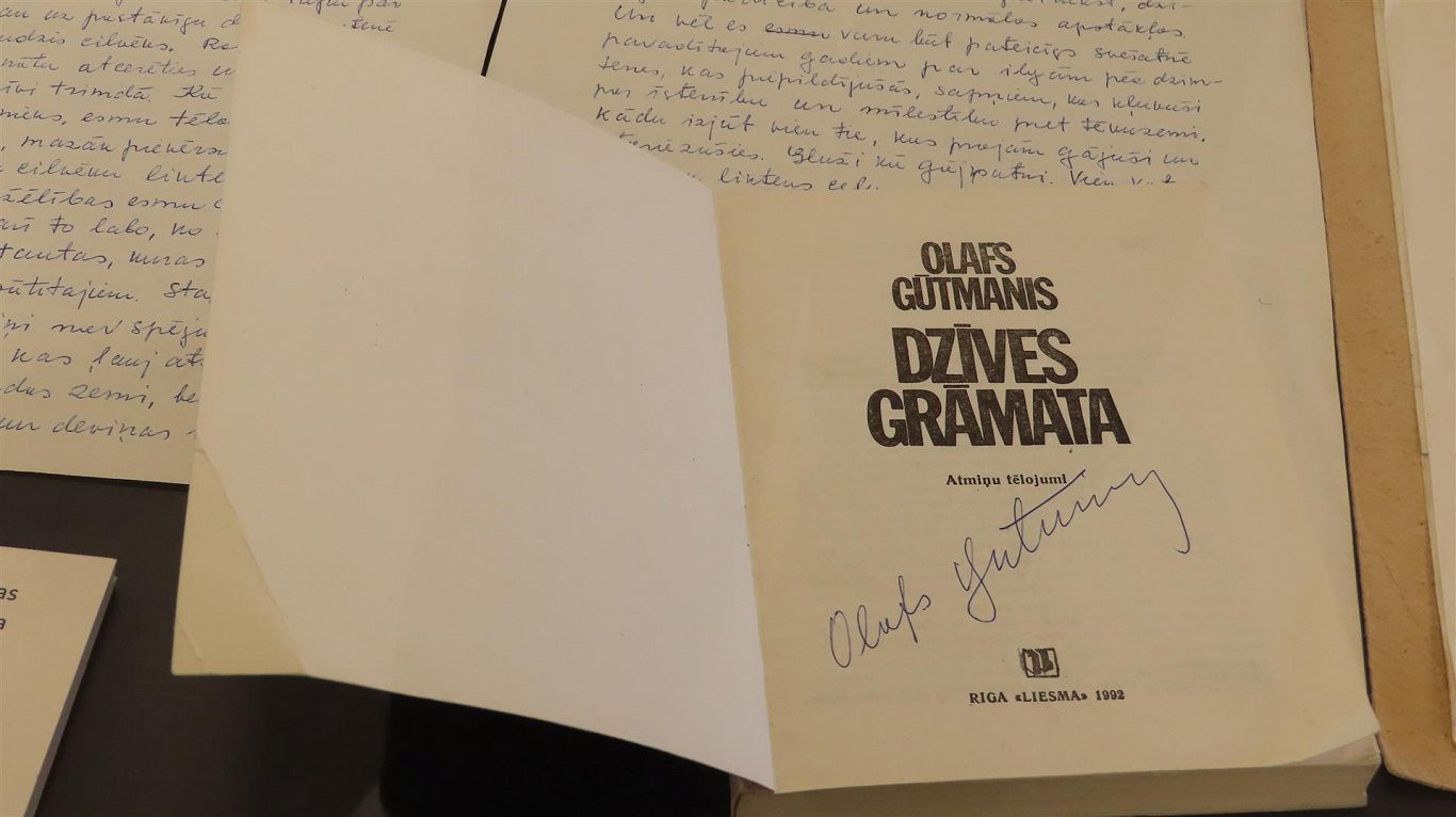 Тут не только фотографии из многочисленных поездок, на одной из стен представлены семейные снимки, сделанные еще в Латвии и уже в Сибири. В витринах — книги и рукописи Олафа Гутманиса. Многие фотоснимки сопровождаются цитатами из его книги Mednieku stāsti («Рассказы охотников»). Получилась захватывающая история о суровом сибирском крае, красоте его природы и живущих там людях — представителях коренных народов, ссыльных и их потомках.