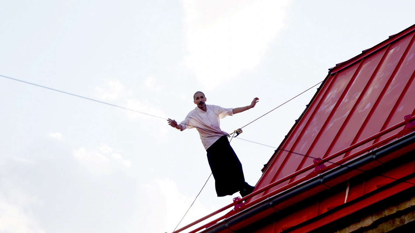 заиграла волшебная музыка, и на крыше цирка появился человек.