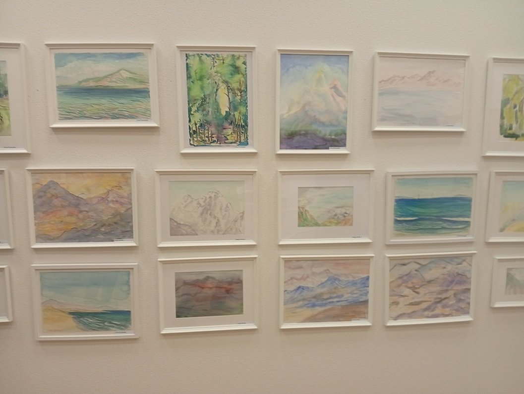 Кроме того, здесь и работы Юлии Швед — нежные и туманные акварели из Италии, а также из парка Победы в Риге (цветущие сакуры), виды Гималаев.