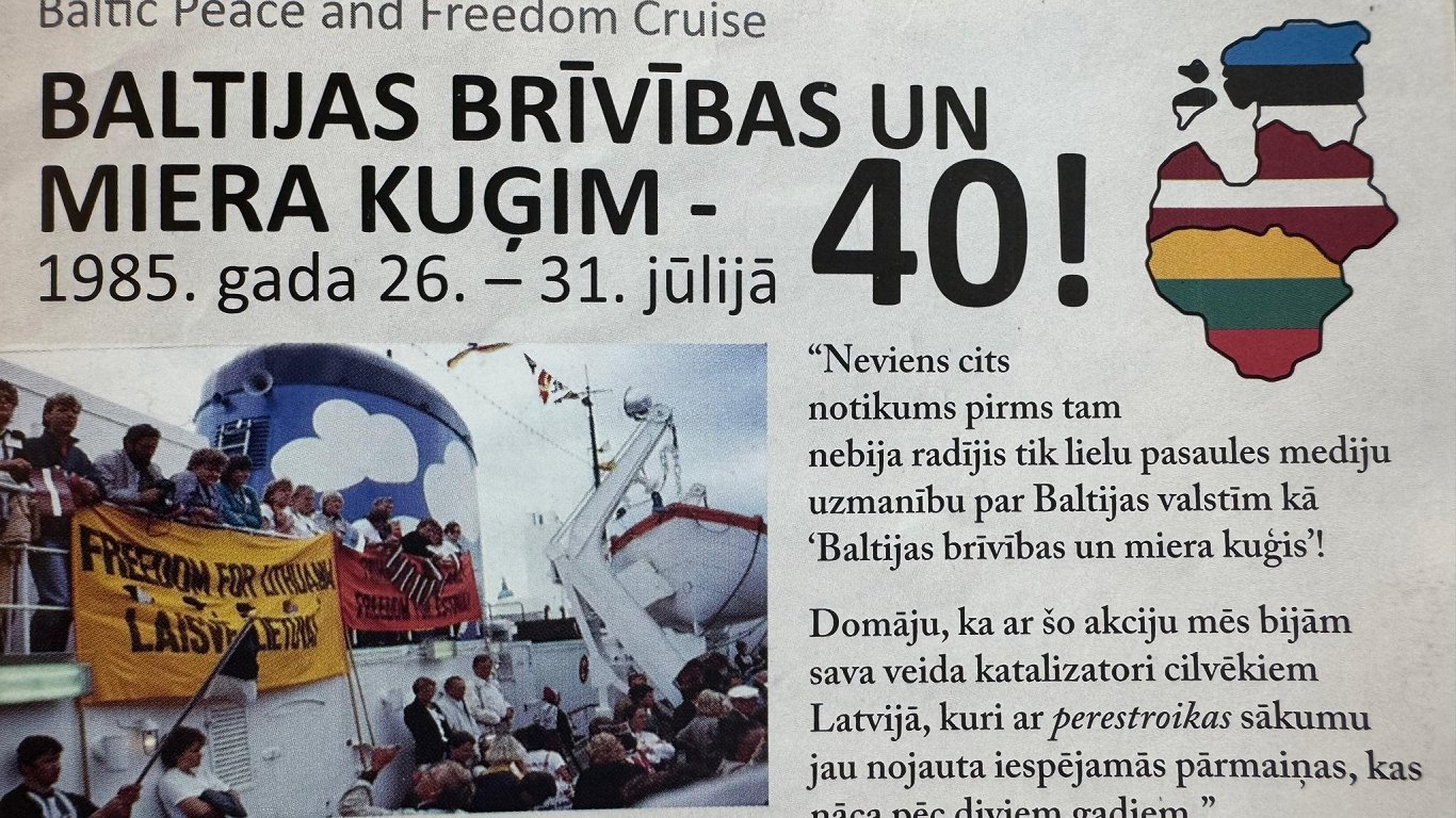 Эти кадры заставляют трепетать и все еще волнуют. Белое судно и триста молодых людей, которые верят, что родина их родителей снова будет свободна. Во время плавания «Балтийского корабля свободы и мира» проходили дискуссии, а в Стокгольме и Хельсинки — демонстрации. Организаторы и участники того плавания все произошедшее до сих пор помнят отчетливо.