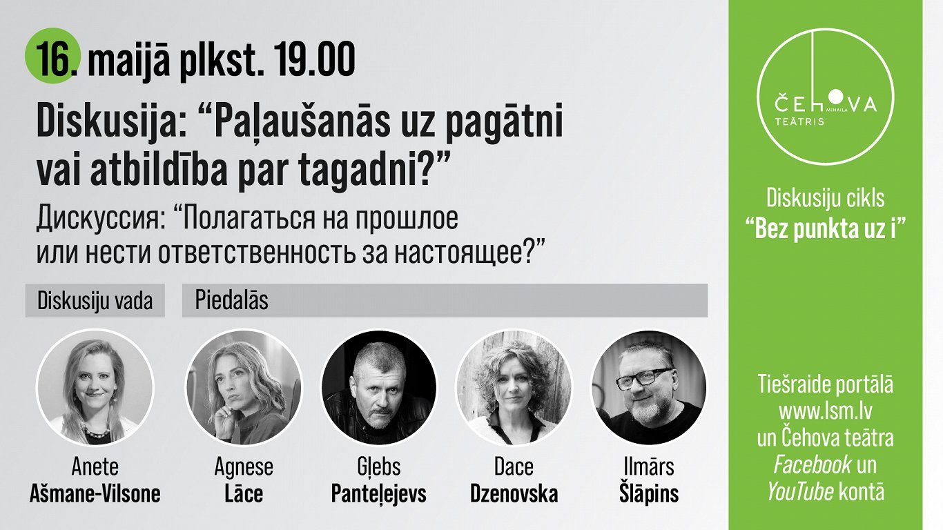 Дискуссия будет транслироваться в прямом эфире на портале LSM.lv, а также на странице Театра Чехова в Facebook и на его YouTube-канале. Начало в 19:00.