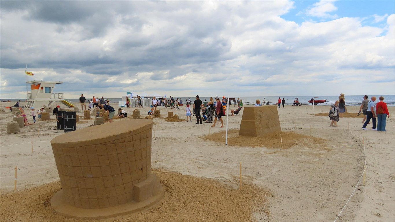 Приморский парк переполнен горожанами и туристами, интересное — на каждой аллее и лужайке, от ярмарки и цирковых артистов до живописи и театра. А на берегу моря построена еще одна Лиепая, песчаная! Популярнейший праздник в разгаре, впереди еще много увлекательного. И единственное, что беспокоит посетителей — как бы дождь не пошел…