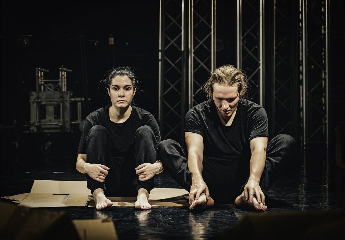 «Вначале мы опирались на повесть Константина Сергиенко “До свидания, овраг”, там речь идет о своре собак. Мы ее прочитали и отложили, потом несколько месяцев делали этюды, акции, зарисовки — и тема стала глубже, она не только собак касалась. В целом — об отношении людей к животным.