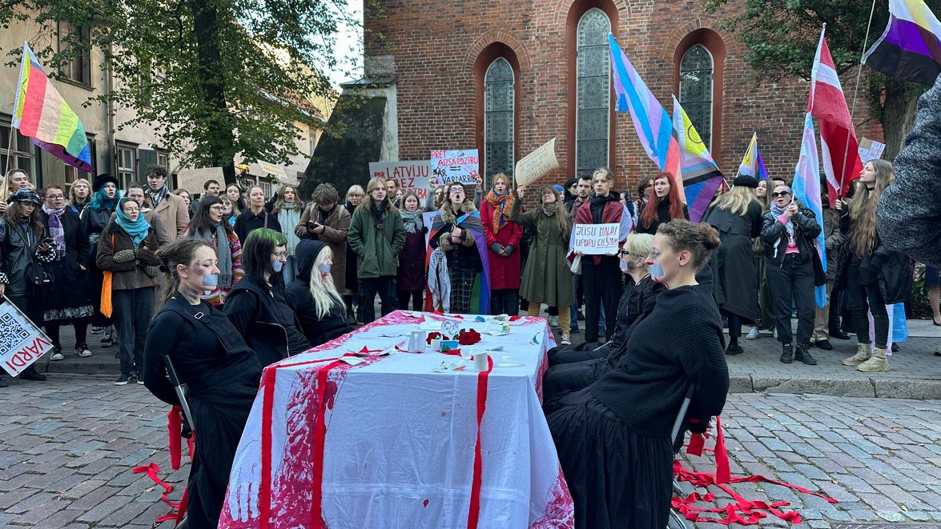 «Избиение женщин — не наша ценность». Если кто-то из депутатов комиссии Сейма по иностранным делам в этом сомневается — пикет под их окнами призван об этом напомнить.
