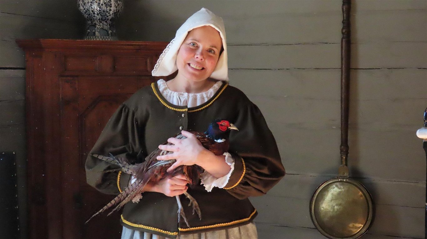 Представитель музея Раса Залите — тоже в аутентичном костюме — решила сфотографироваться с одним из фазанов, очень красивые снимки получились. Прям малые голландцы!