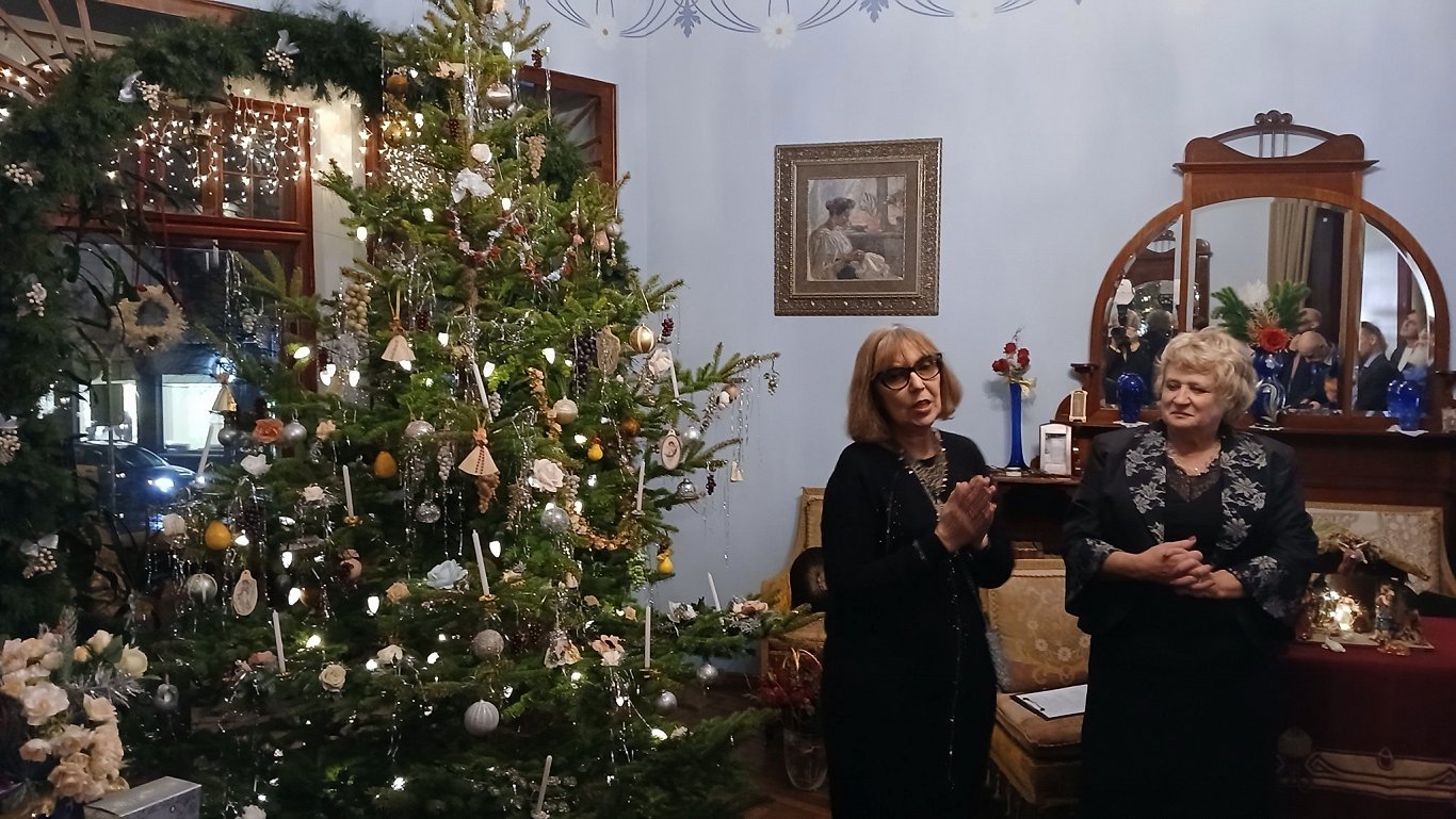 Художница Тамара Чудновская уже не первый год украшает в этом музее ёлки, знакомя с рождественскими традициями разных стран. На сей раз здесь царит французское рождественское настроение, не случайно выставку поддерживает Французский институт в Латвии. Главная ёлка музея, стоящая в гостиной, украшена в соответствующем стиле — украшениями груш, ниток, серебряным дождиком и мелкими бумажными, картонными фигурками. Верхушку ёлки венчает звезда-ангел.