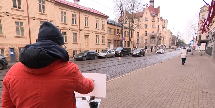 Александра часто называют самым рижским художником. Рига — главная тема его творчества. Редкое красивое здание столицы не удостоилось его кисти. Но все же жемчужины находятся до сих пор. Например, этот дом на улице Миера. У Александра всегда с собой походный набор художника — краски, кисти и маленький альбом.