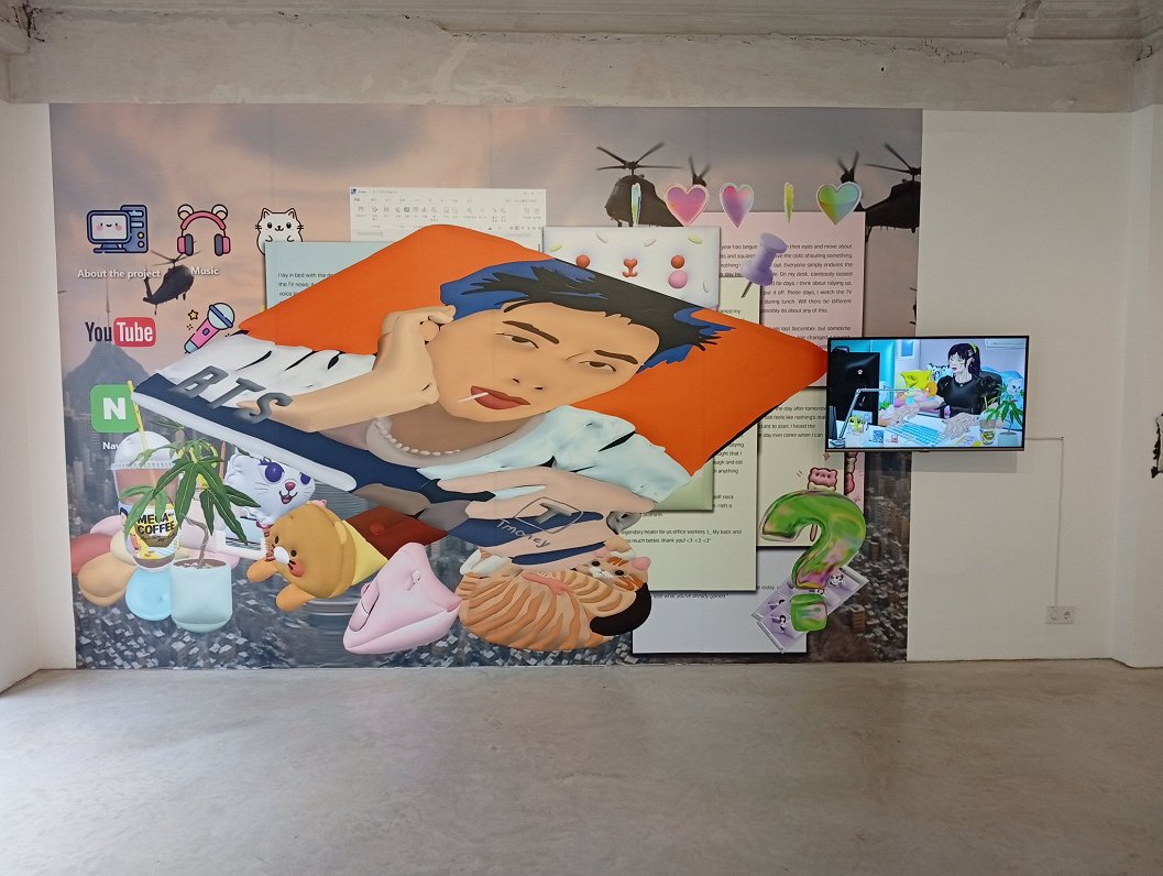 Работы проливают свет на то, как медиа, поп-культура и социальное давление формируют восприятие тела, самооценку и идентичность. На картинах мы видим, как человек сидит в интернете, сравнивает себя с идеалом и… понемногу, кажется, сходит с ума.