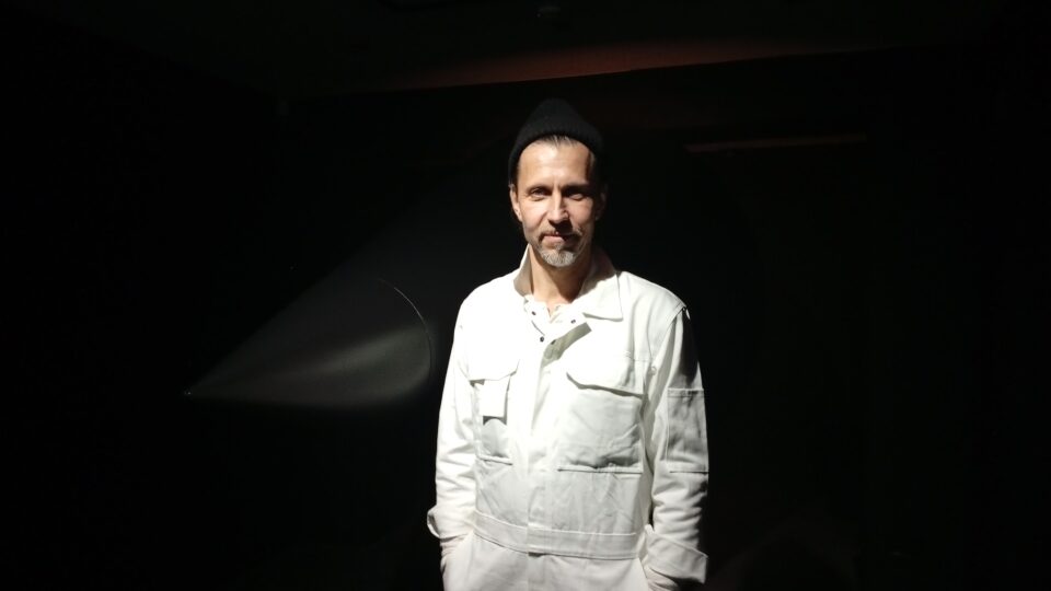 Артур Виртманис — мультимедийный художник, сценограф и куратор, известный своими пространственными инсталляциями и рисунками углём. Но интересно, что совместно с ним в этой работе участвует и Семён Ханин — поэт и мультимедийный художник, один из участников творческого объединения «Орбита», чья практика стирает границы между текстом, объектом, звуком и перформансом. Какова его роль в данном случае?
