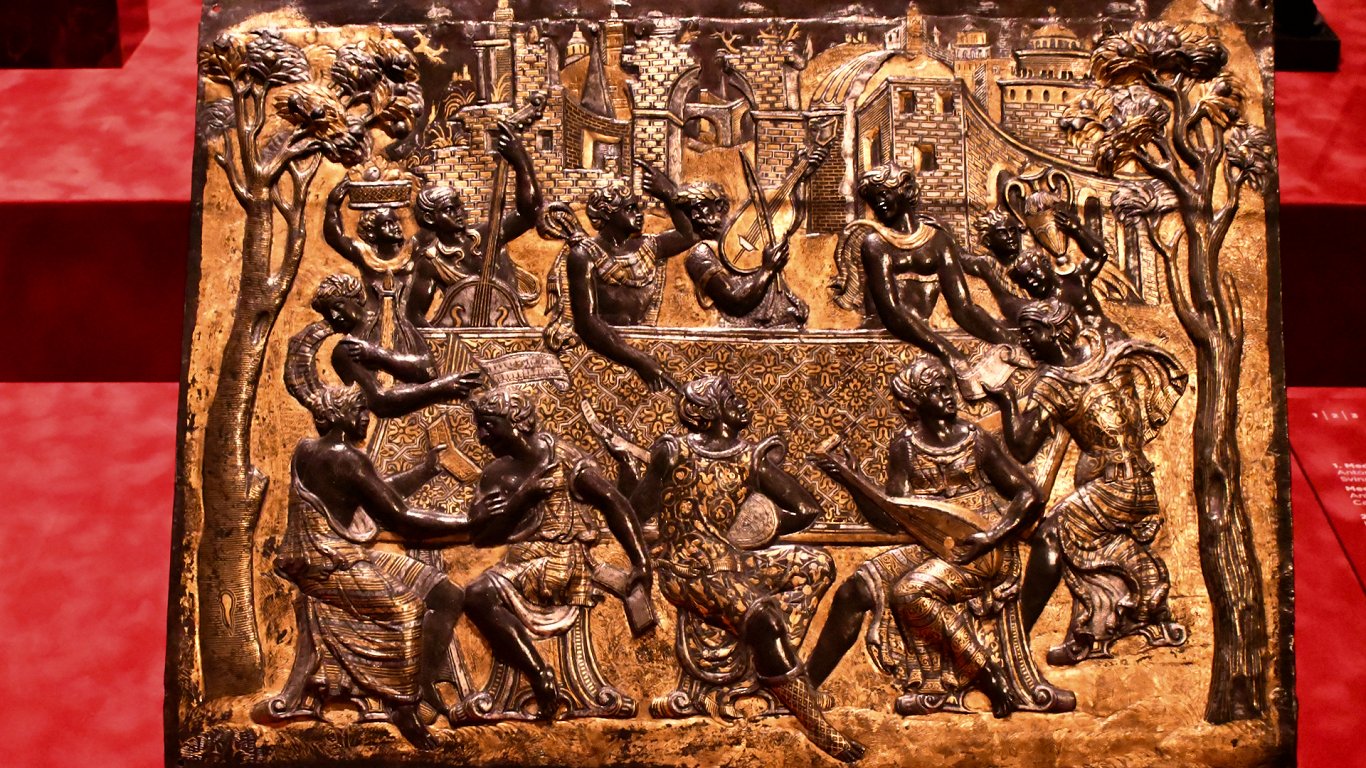 В пространстве выставки «Palazzo Madama. Итальянское искусство и ремесла VI–XIX веков» все продумано до мелочей. Полумрак и обилие красного цвета в зале, фотографии дворцовых интерьеров на заднике выставочной сцены…