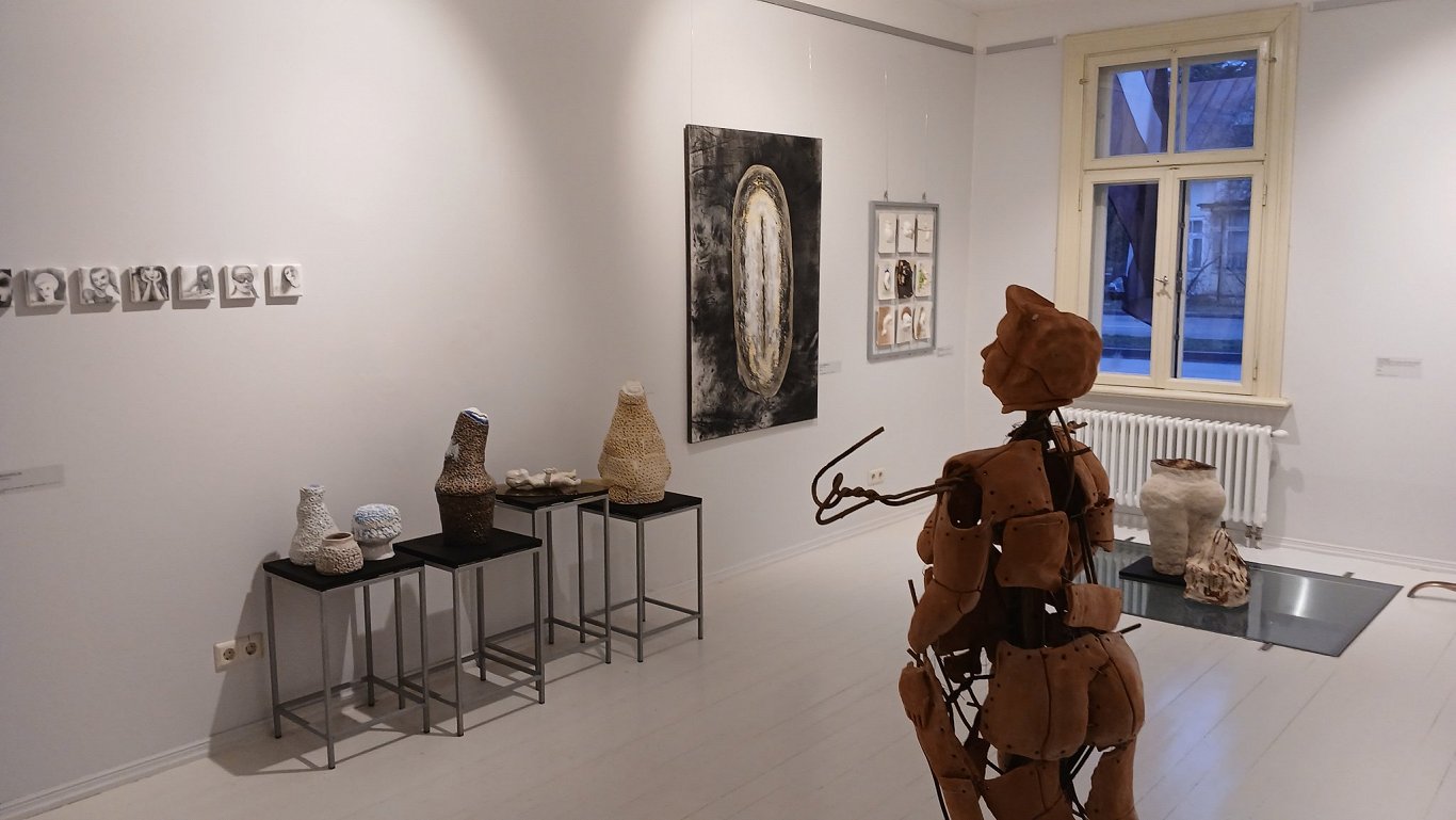 Кроме скульптурных (чугун, камень, металл, гранит) работ представлена и керамика работы Риты — например, «Тело женщины — как ваза, в которой цветы цветут». Равно как и керамика Саниты Чевере — её материалом стали каменная масса и фарфор. Например, керамическое изображение младенца под названием «Сотворение», а также фарфоровая «Иллюзия о счастье».