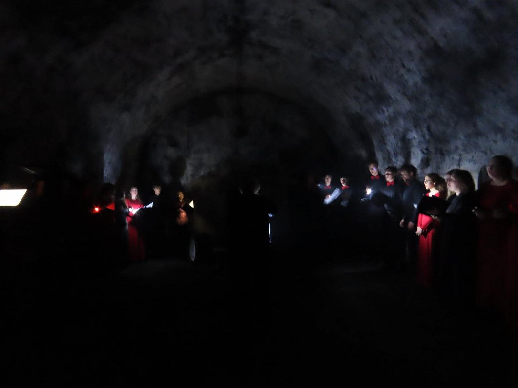 Сначала была жуткая гроза, потом запели птицы и зазвучал хорал… Всё это — в кромешной тьме под каменными сводами старинного порохового погреба. Таким был концерт хор Вильнюсского университета Gaudeamus под руководством Расе Гелготиене.