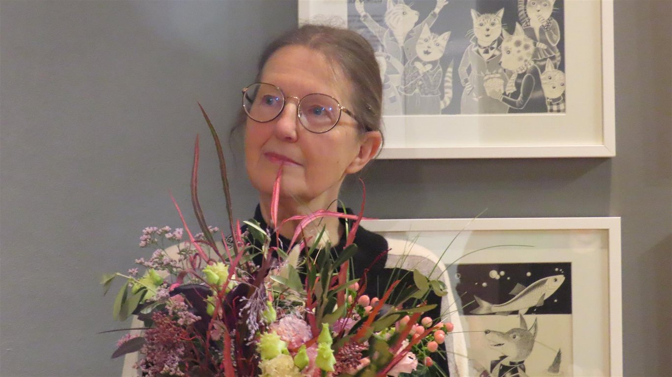 На открытии выставки были и Инесе Зандере, и поэтесса Иева Рупенхейте, над книгой которой сейчас работает Анита Паэгле. Они рассказывали о сотрудничестве с художницей, а та — и об этом, и о своём творчестве.