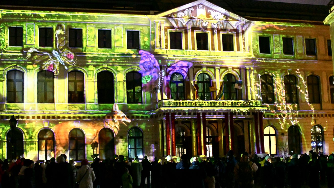 Людской поток заполняет окрестные улицы, перемещается с площади Домской на Ратушную и далее к Стрелкам, где тоже обещано много всего интересного. Например, фантастические и красочные миры, расцветающие на фасаде Ратуши.