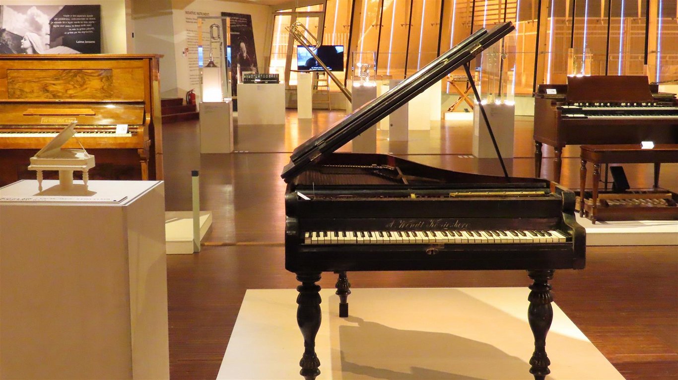 Есть на выставке и музыкальная скамейка, и… В общем, тут очень интересно! Но конечно, в Лиепае сейчас представлена лишь крошечная часть сокровищ Латвийского национального музея писательства и музыки. Ивета Рускуле говорит, что всего в музее больше 360-ти инструментов, в том числе и уникумы — например, пианола, это механическое пианино, оно воспроизводит запись с перфокарты, на одном из «роликов» записан «Меланхолический вальс» Эмила Дарзиньша.