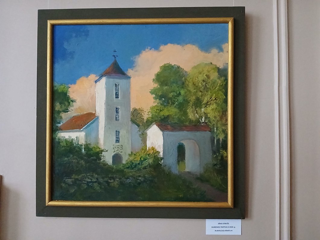А кроме того, перед нами сделанные в этом году три работы выдающегося кинорежиссёра Яниса Стрейчса, который уже достаточно давно занимается и живописью (увлёкся ею во время пленеров, проводимых его друзьями). Одна из картин посвящена Украине и воспоминанию о поездке туда в мае 1986 года — «Вечер под Черниговом». А есть еще и «Банька в Палиепе» и «Курземский триптих».