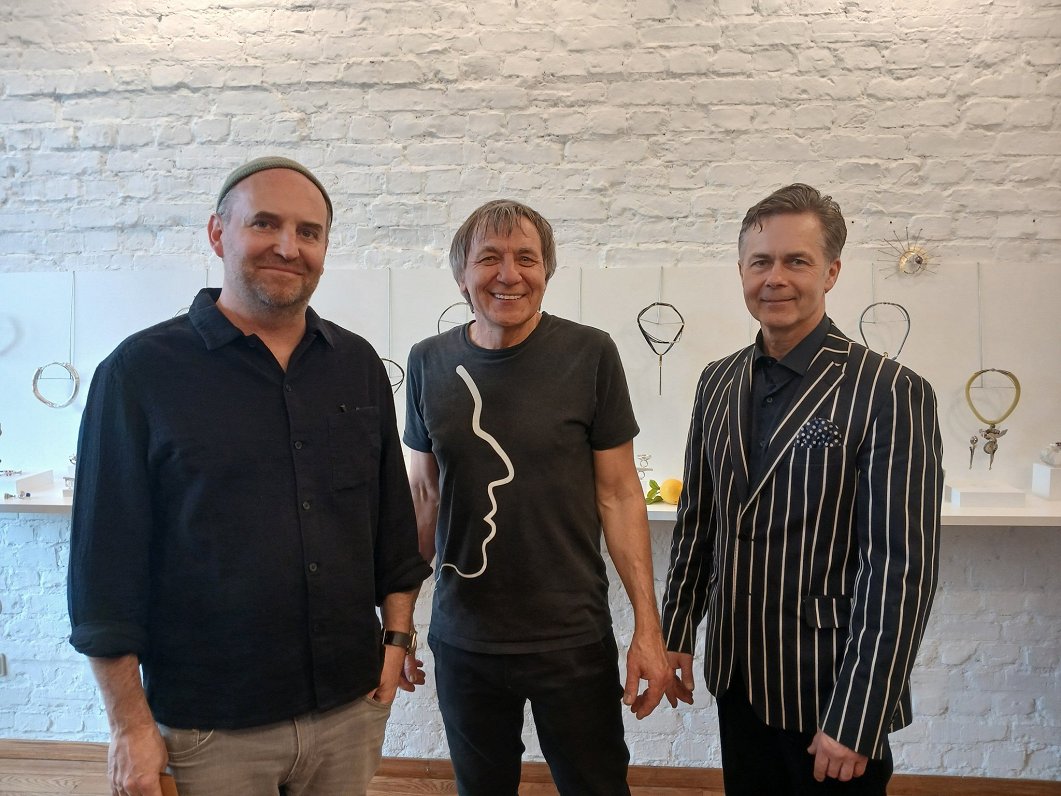 В арт-салоне Designers 5 (Рига, улица Тербатас, 85) открыта выставка друзей, ведущих ювелиров Латвии — Валдиса Брожи, Мариса Шустиньша, Андриса Лаудерса. «Выставка называется «*3D», и каждый может его интерпретировать по своему желанию — три друга, три дименсии (измерения) и т.д.», — сказал LSM+ господин Броже.